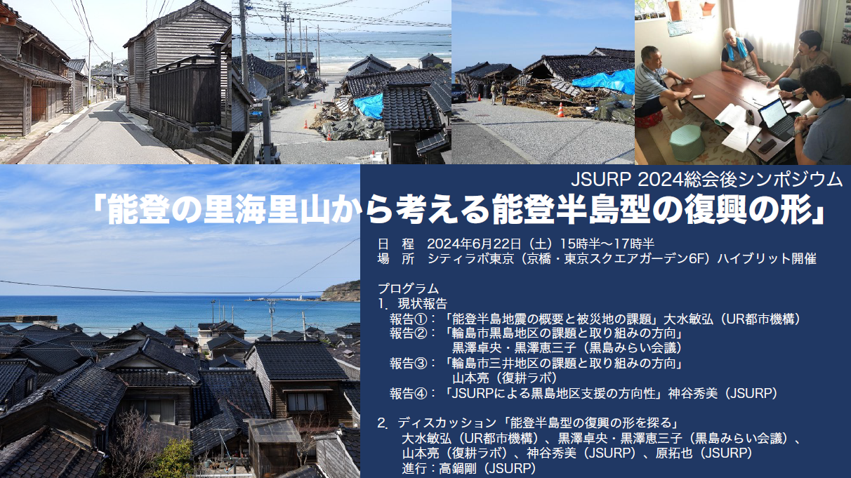 パネラー:大水敏弘(UR都市機構)、黒澤卓央・黒澤恵三子(黒島みらい会議)、山本亮(のと復耕ラボ)、神谷秀美(JSURP)、原拓也(JSURP)