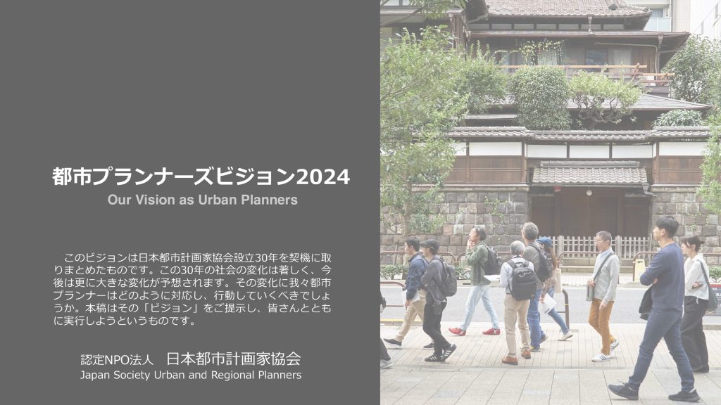⽇本都市計画家協会設⽴30年を契機に、『都市プランナーズビジョン2024』を取りまとめました。この30年の社会の変化は著しく、今後は更に大きな変化が予想されます。その変化に我々都市プランナーはどのように対応し、行動していくべきでしょうか。本稿...
